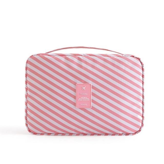 Trousse de Toilette de Voyage Rayures Roses : Élégance et Praticité